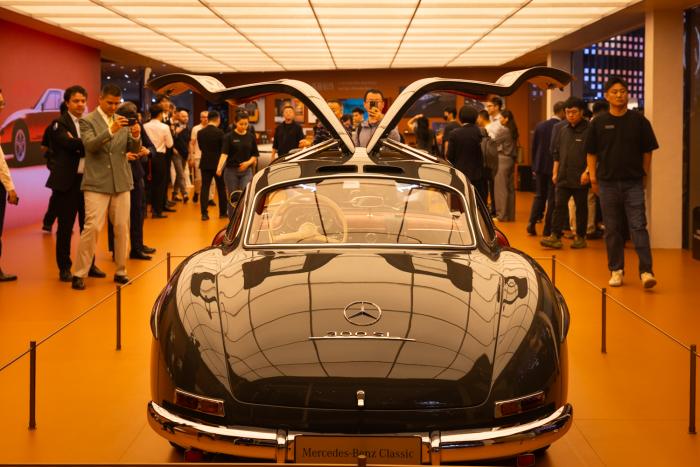 据了解,2026北京车展展车总数1451台,包含首发车181台,概念车71台。图为梅赛德斯奔驰展台