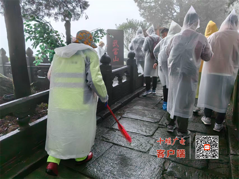 雨中的武当,因那一抹抹跃动的“橙”光而温润,更因这些风雨无阻的环卫工人而显得格外温暖与文明,他们用最朴实的行动守护着景区的干净整洁。